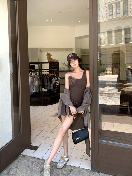 NA+ 立體花仙子不規則拼接連身裙 咖