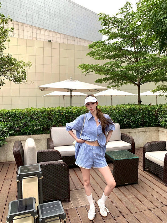 ''Na+''Fun玩海邊 慵懶藍色條紋花邊設計襯衫 比基尼