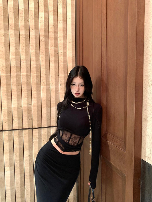 ''Na+'' 撩心攻勢 心機魚骨透視感上衣 魚尾半身裙 黑