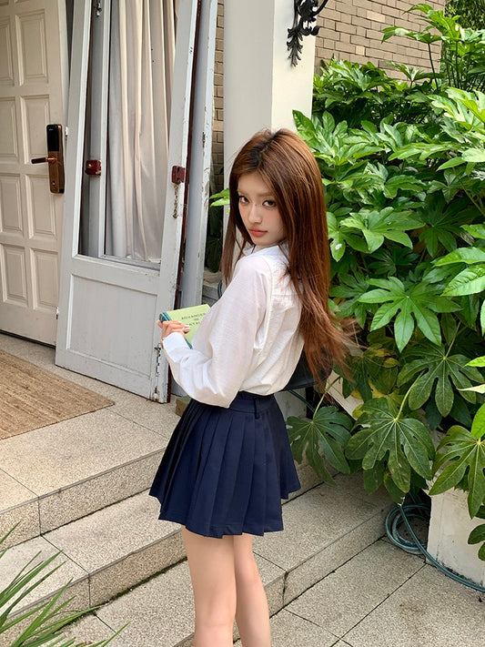 【Na+】乖巧學院風 百搭polo領百摺裙裝 藏青