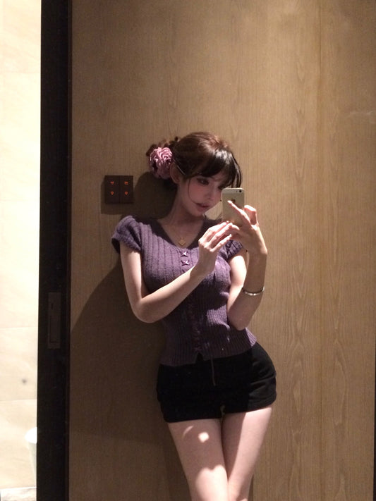 【Na+】復古vintage顯白紫色針織上衣