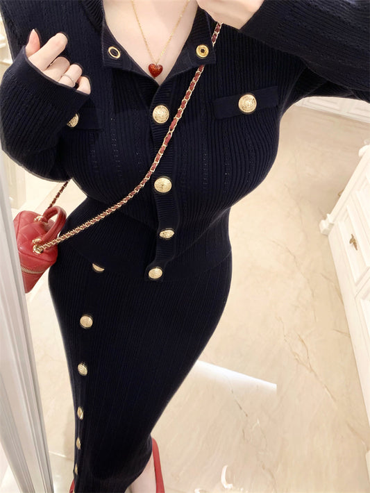 【Na+】小香排扣氣質針織兩件套