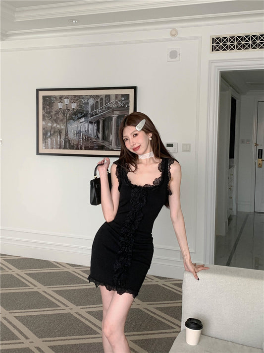 【Na+】復古磨毛蕾絲拼接背心 灰/黑