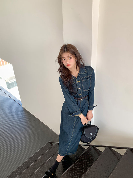 【Na+】復古單寧排釦牛仔連身裙