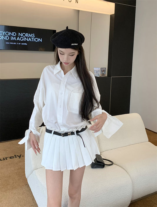 【Na+】日常百搭 慵懶口袋襯衫 百摺裙 白
