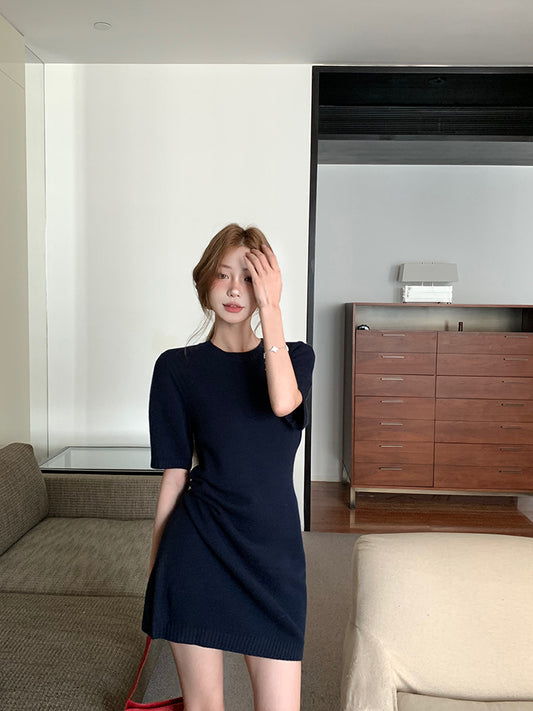 【Na+】氣質溫柔羊毛針織包臀裙 藍/灰