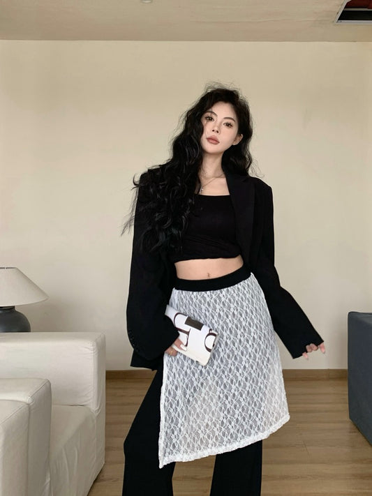 【Na+】氣質辣妹反差感 油畫網紗打底上衣