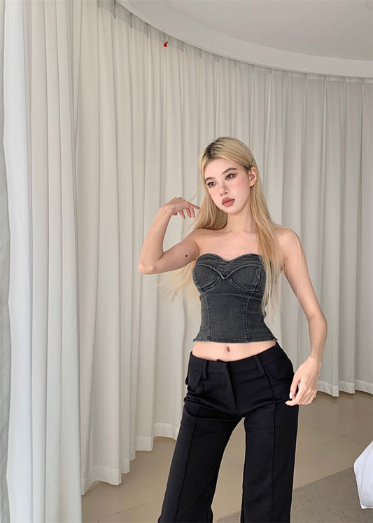 【Na+】牛仔馬甲式抹胸 灰黑