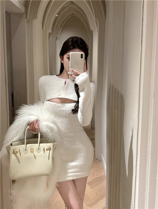 【Na+】溫柔軟糯 胸前拉鍊可拉連身洋裝