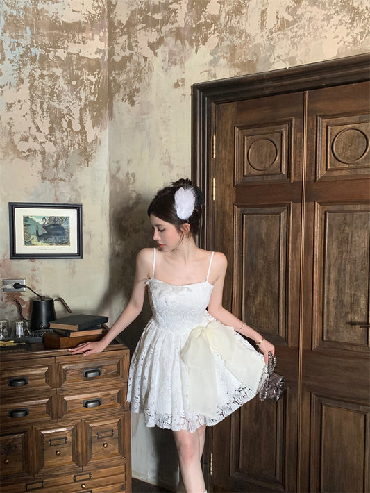 【Na+】重工古典芭蕾 蕾絲抹胸法式收腰洋裝