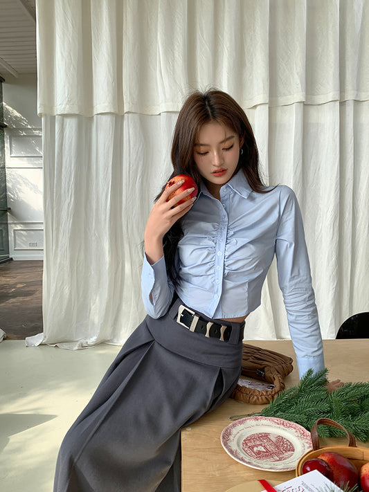 【Na+】通勤抓皺修身短襯衫 西裝半身裙