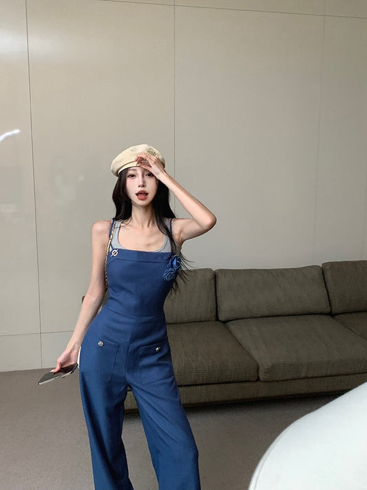 【Na+】重工 山茶花肌理紋平口連身褲 灰色背心