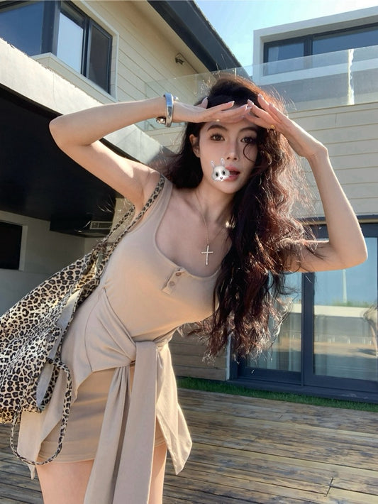 【Na+】辣妹蕾絲吊帶背心 卡其