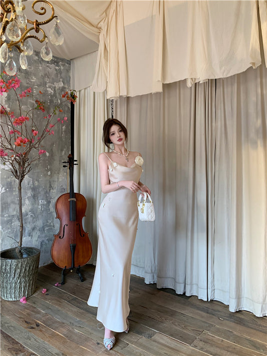 【Na+】韓系女主 休閒通勤杏色綁帶連身裙