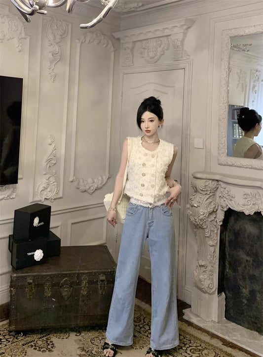 【Na+】雙排扣流蘇小香馬甲背心 杏