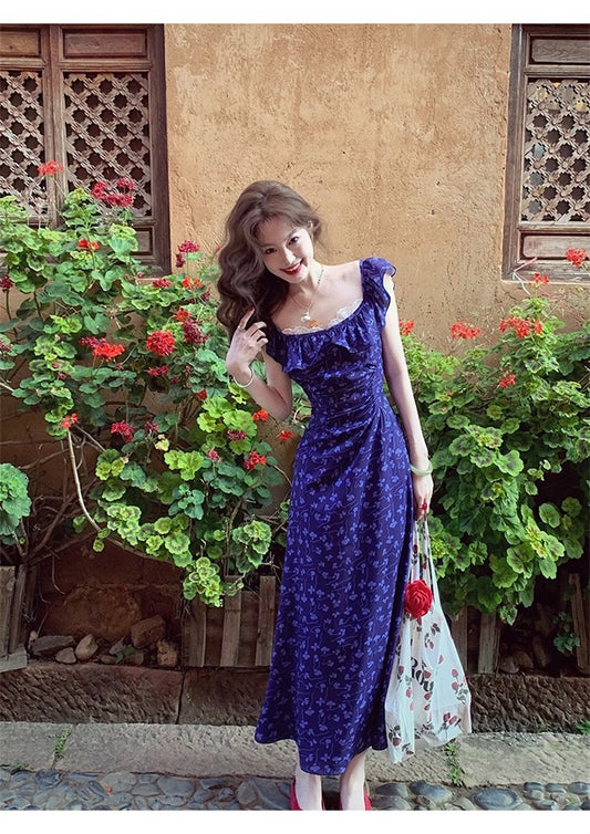 【Na+】顯白紫莓果宴 法式浪漫收腰U領連身洋裝