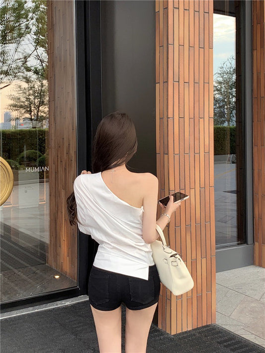 NA+ 性感小野貓 亞歷山大疊穿亮片短褲(緞面褲另搭)/ 白/黑色背心