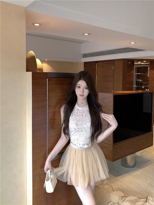NA+ 氣質鉤花蕾絲背心 網紗蓬蓬半身裙