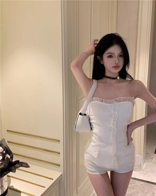 NA+ 法紗荷葉鈕扣抹胸 黑