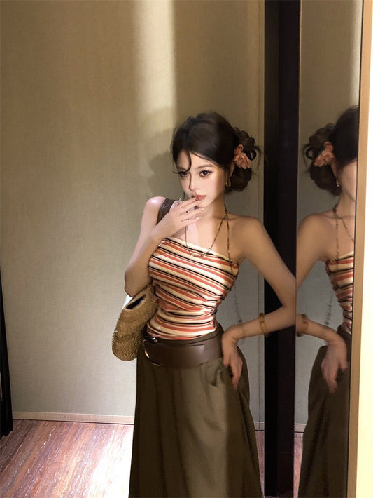 NA+ 嬉痞彩色條紋抹胸 大傘裙擺半身裙