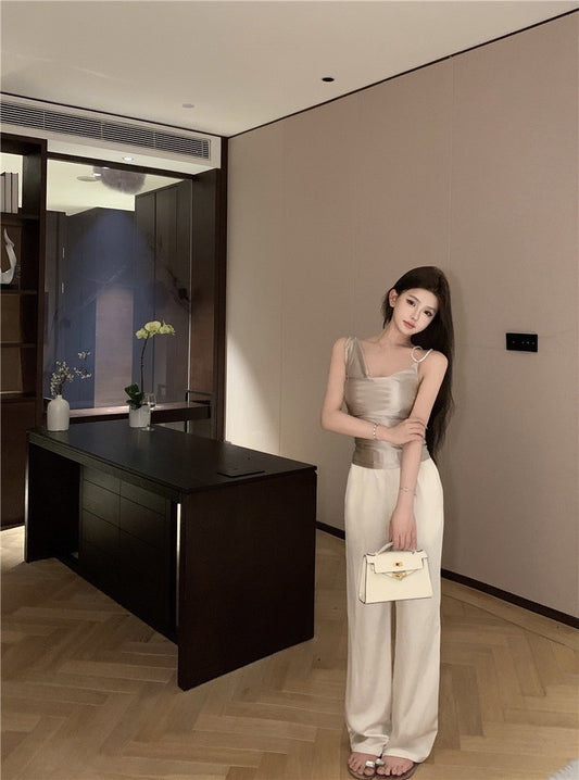 NA+ 香檳珠寶蘯領修身背心 修身休閒褲