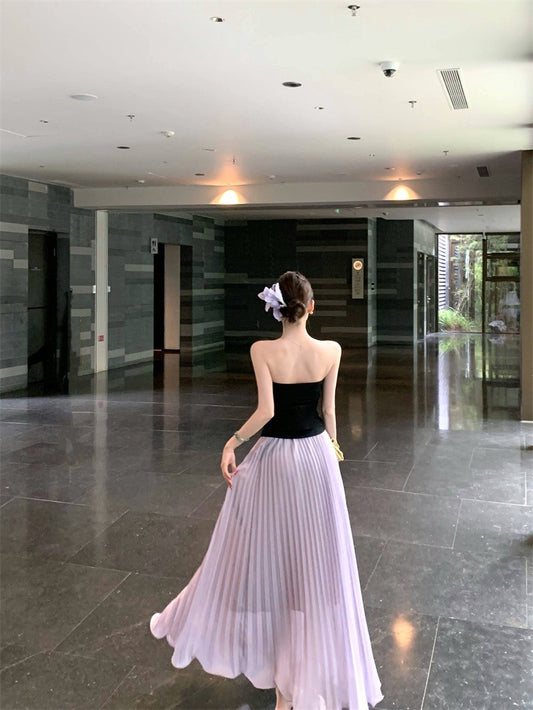 NA+ 木槿吟紫壓褶感氣質雪紡半身裙