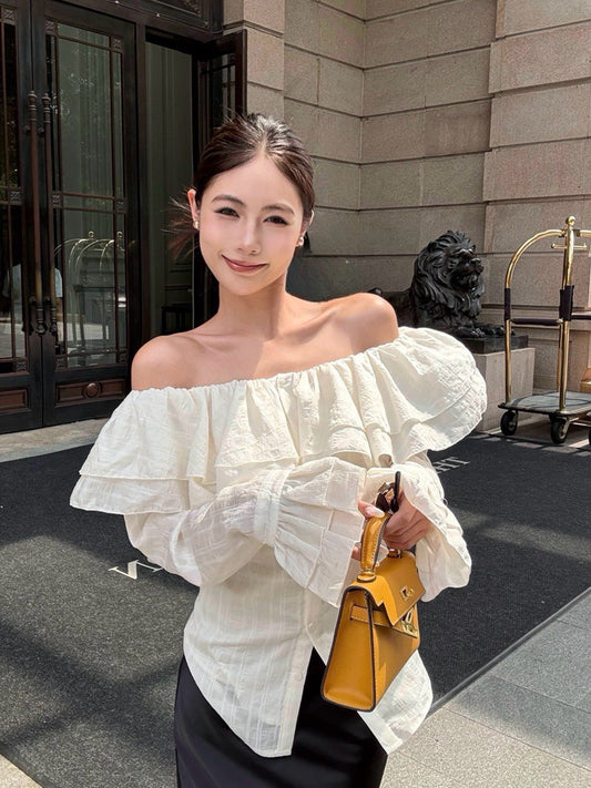 NA+ 法國展荷葉一字領天絲棉襯衫