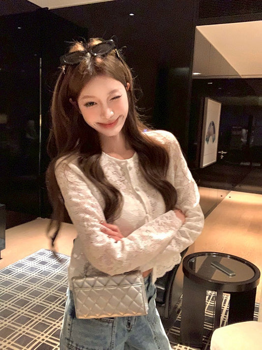 NA+ 推薦款*休閒花邊斜領寬鬆慵懶上衣 白/灰