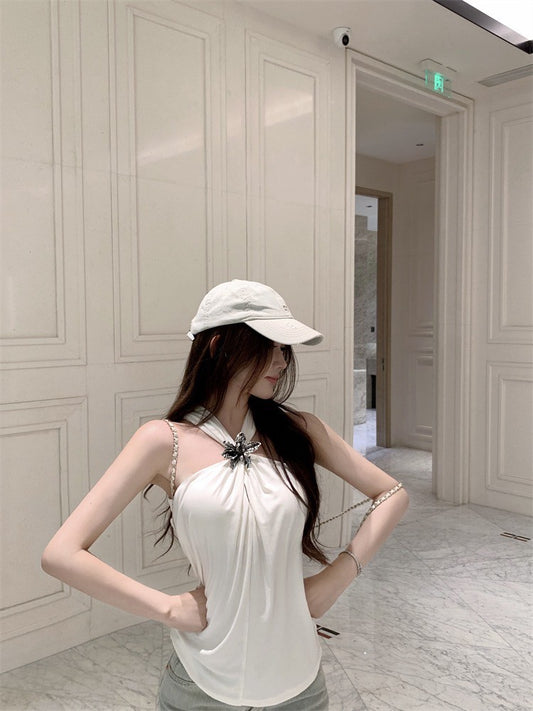 NA+ 法式扭結掛脖休閒背心 白/黑