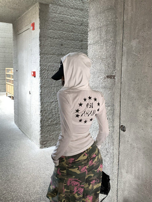 NA+ 美式印花棉混麻連帽上衣 白/黑