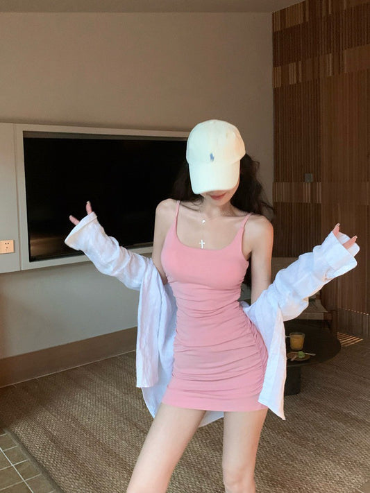 NA+ 辣妹愛穿帶Bra彈力伸縮連身裙 粉/灰/黑