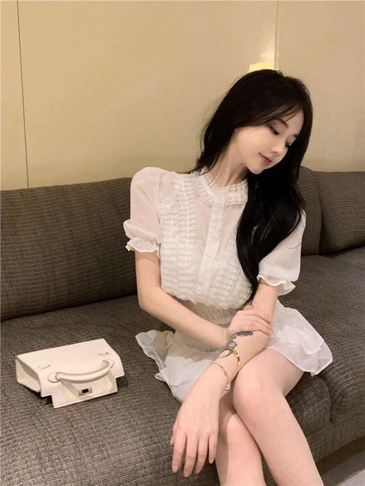 NA+ 中古情話荷葉邊襯衫花苞短褲套裝