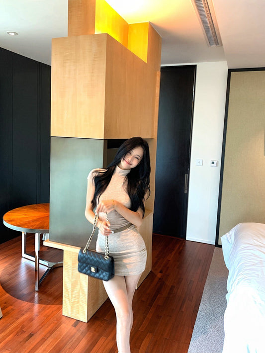 NA+ 御姐貼身燕麥色高領打底連身裙