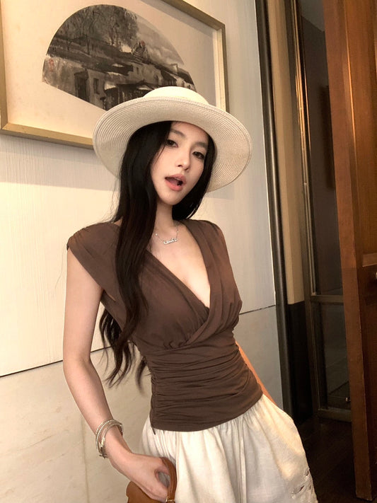 NA+ 華夫格鬆餅帶胸墊度假休閒背心 黑 亞麻涼爽呼吸休閒褲