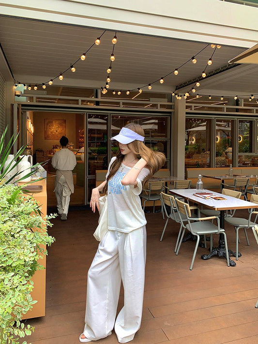 NA+ Lazy老錢輕奢印花寬鬆襯衫 休閒闊腿褲