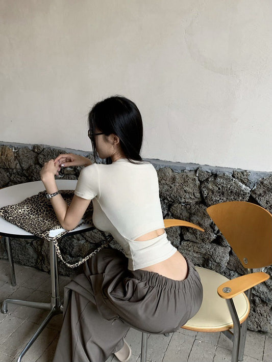 Na+ 細腰計畫 u領顯瘦後背縷空上衣 卡其/白/黑