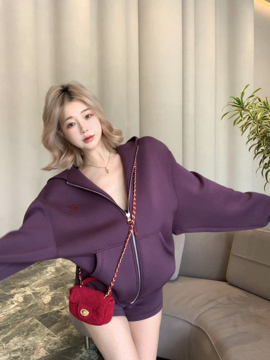 "Na+"澳洲留學生 高磅休閒刺繡外套 修身短款 紫色