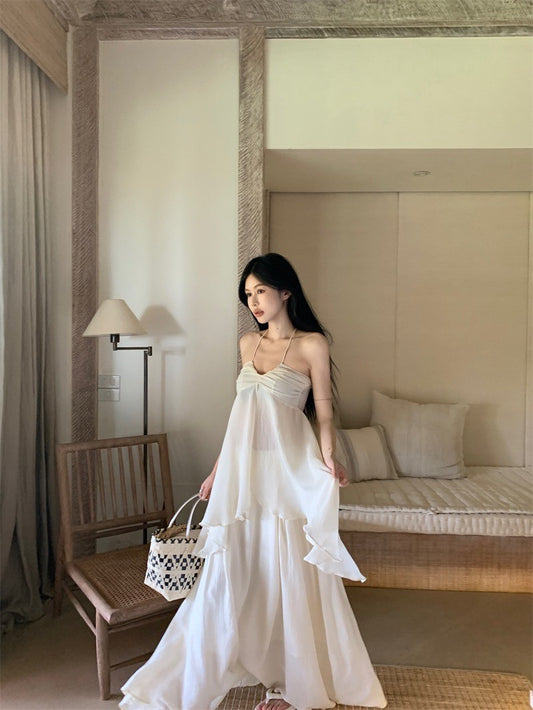 "Na+"氣質優雅 波西度假風正反兩穿吊帶背心 大裙擺飄逸半身裙