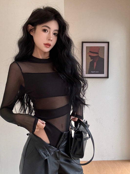 NA+ 內搭高手 心機透視拼接連體衣 黑