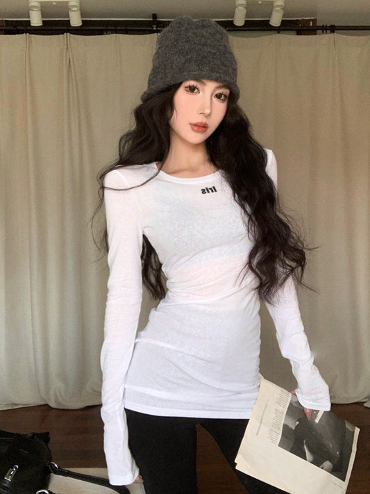 NA+ 柔軟雪花棉圓領打底微透視白色上衣