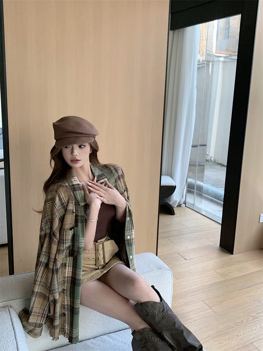 【Na+】韓劇高竿女主管穿搭 職業襯衫 卡其半身裙