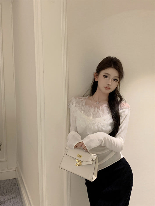 【Na+】仙氣花瓣拼接縷空網紗上衣