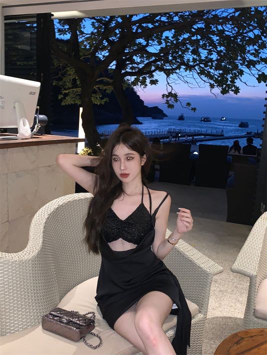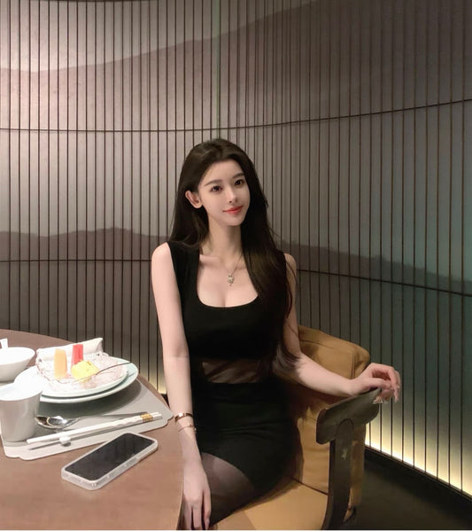 【Na+】新中式類旗袍8字美肩連身裙 黑