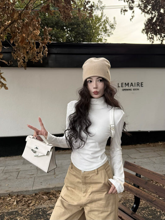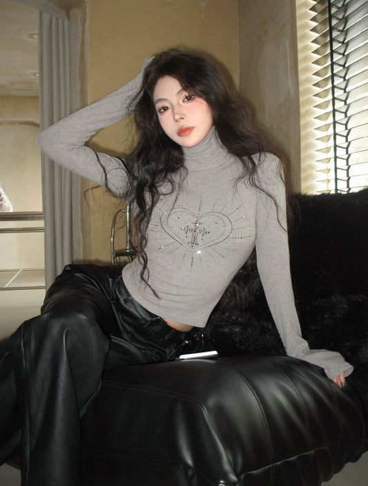 NA+ 基礎高領磨毛燙鑽打底上衣 灰
