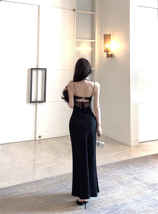 NA+ 蕾絲純欲女神 性感縷空醋酸裙 黑