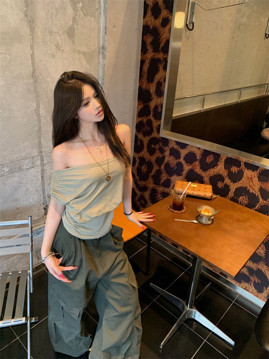 NA+ 老錢通勤私服 卡其休閒背心/印花闊腿褲