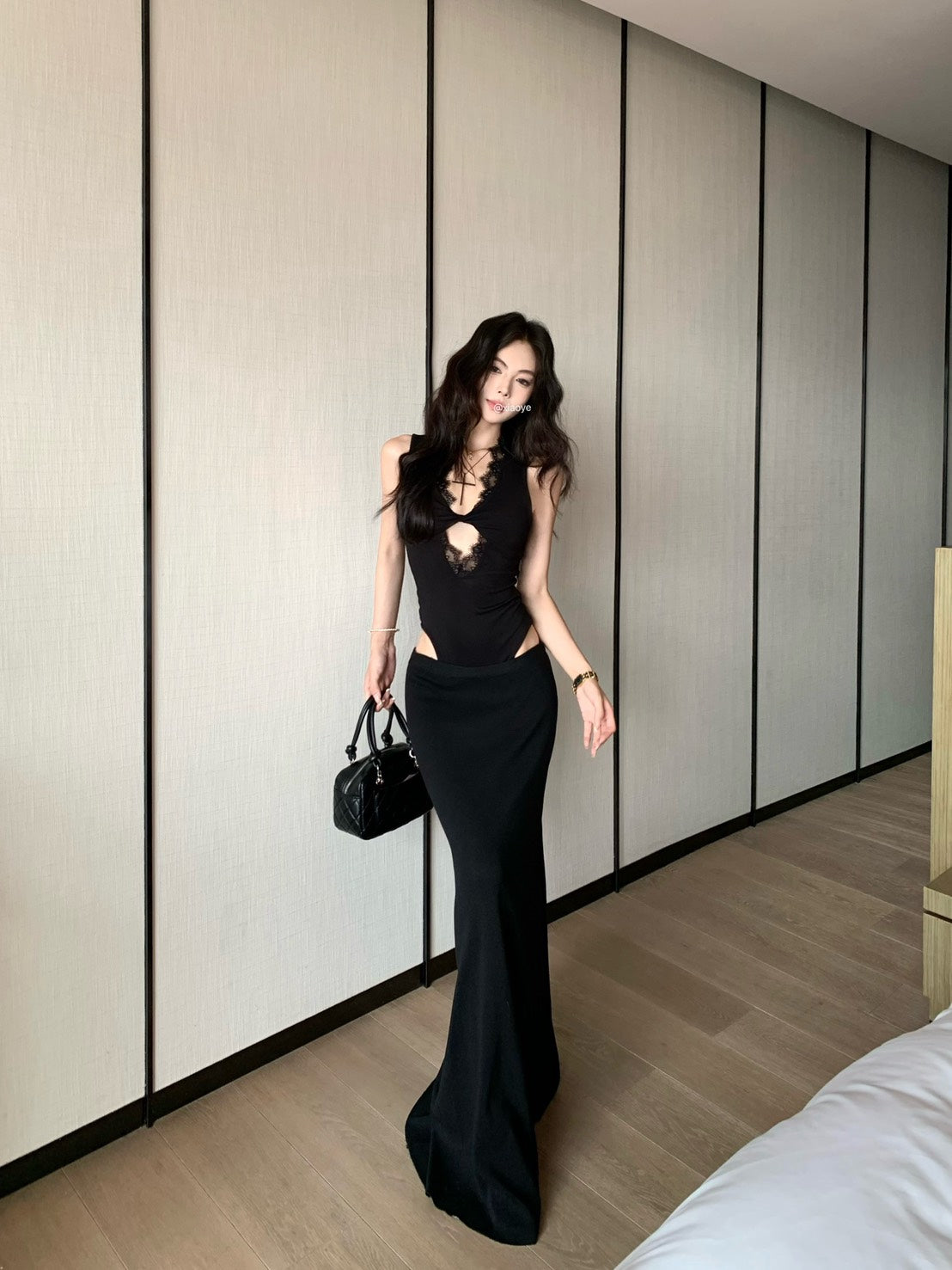 NA+ 人間極品性感縷空蕾絲拼接連體衣 黑