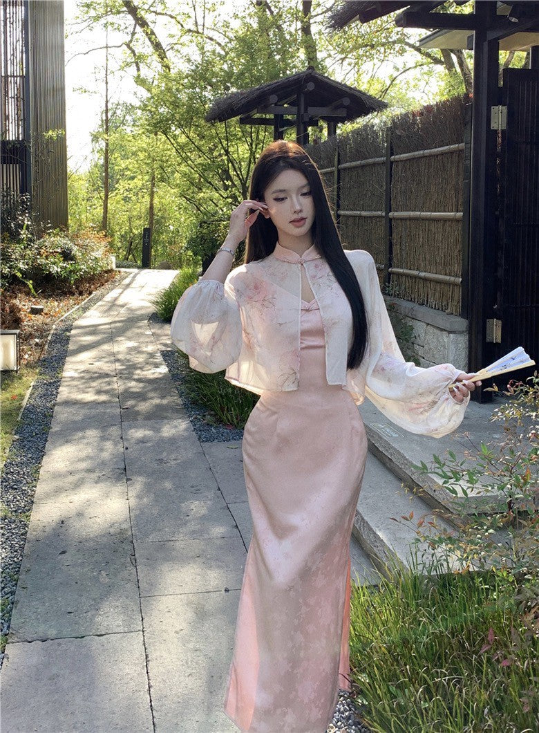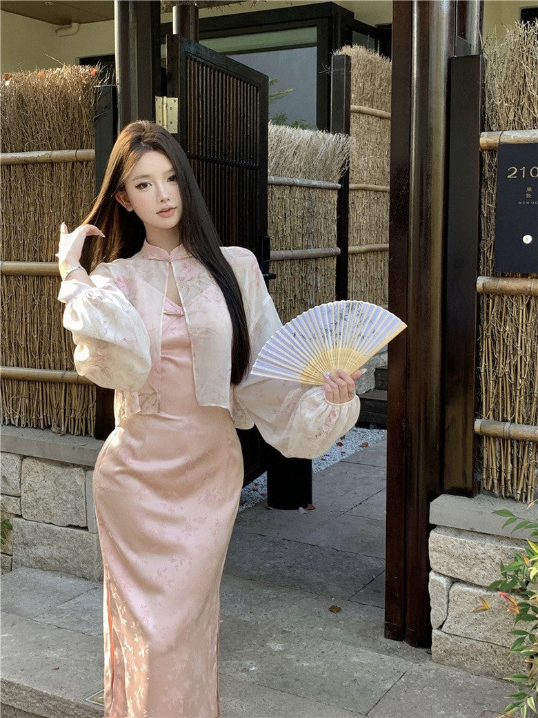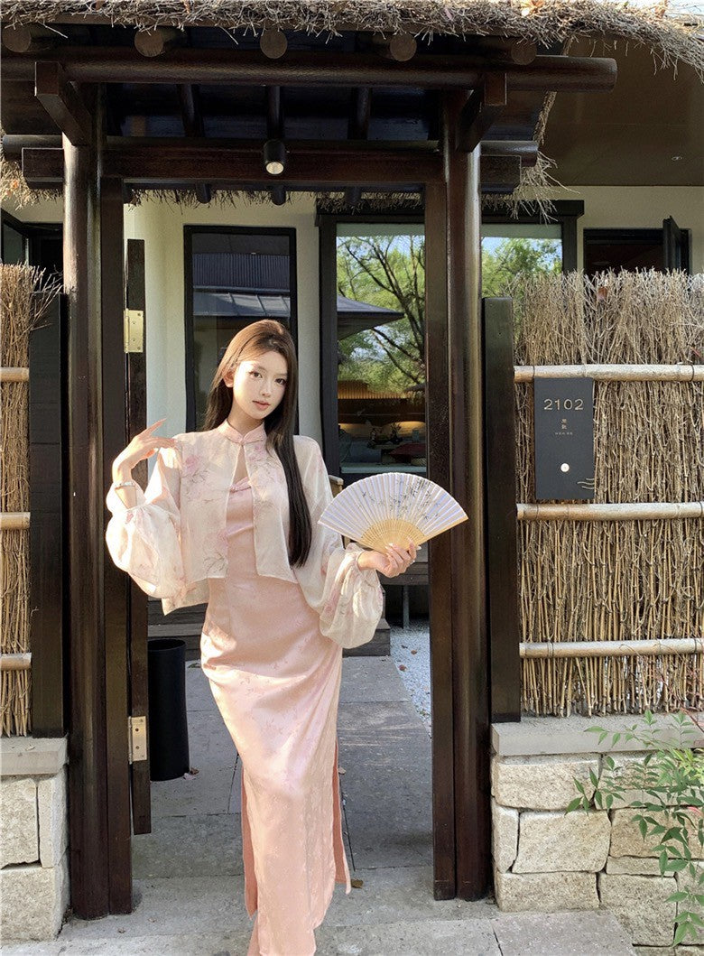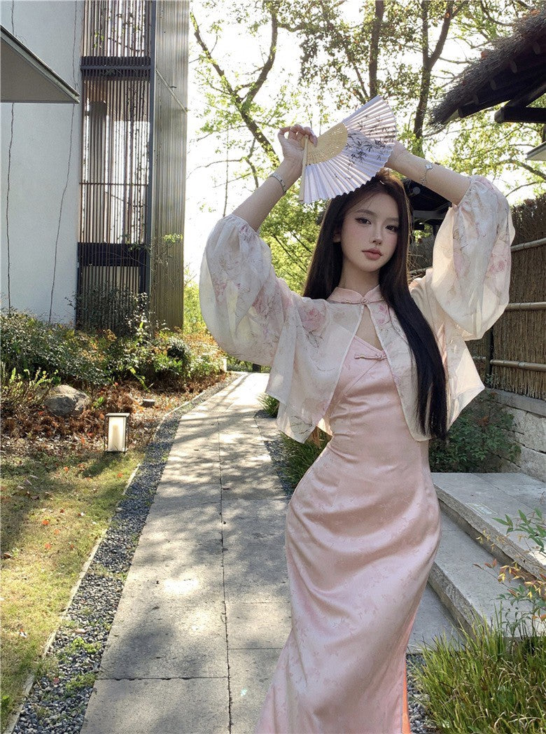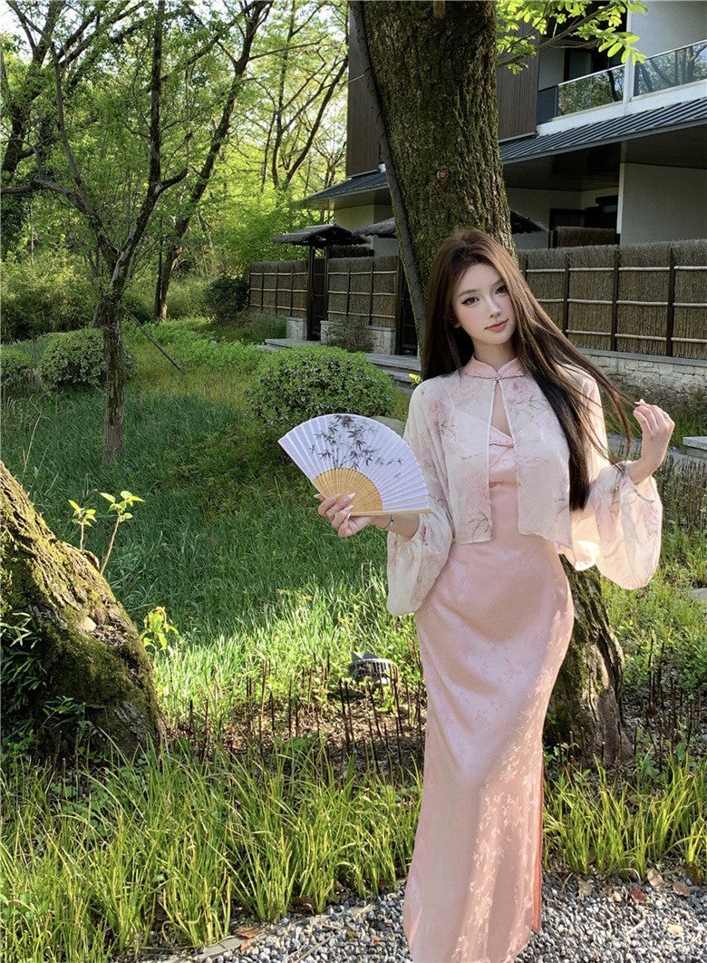 Na+ 出水芙蓉改良式旗袍連身裙 粉色