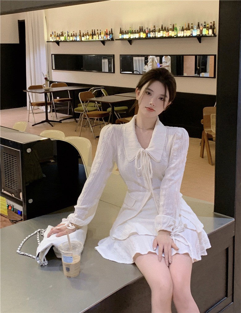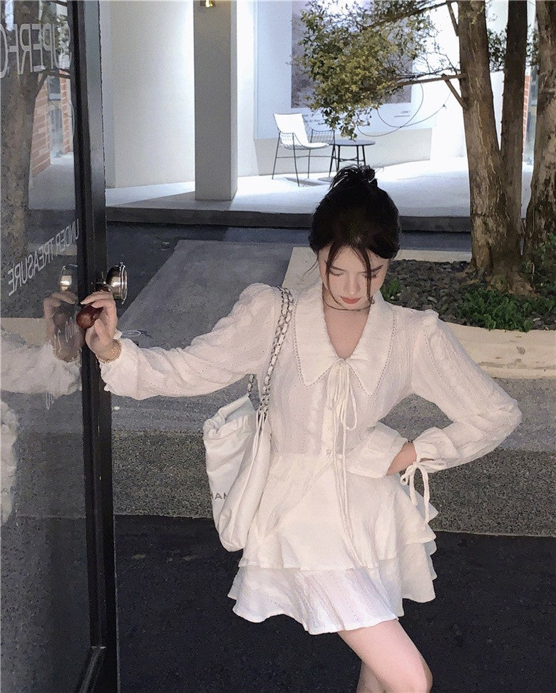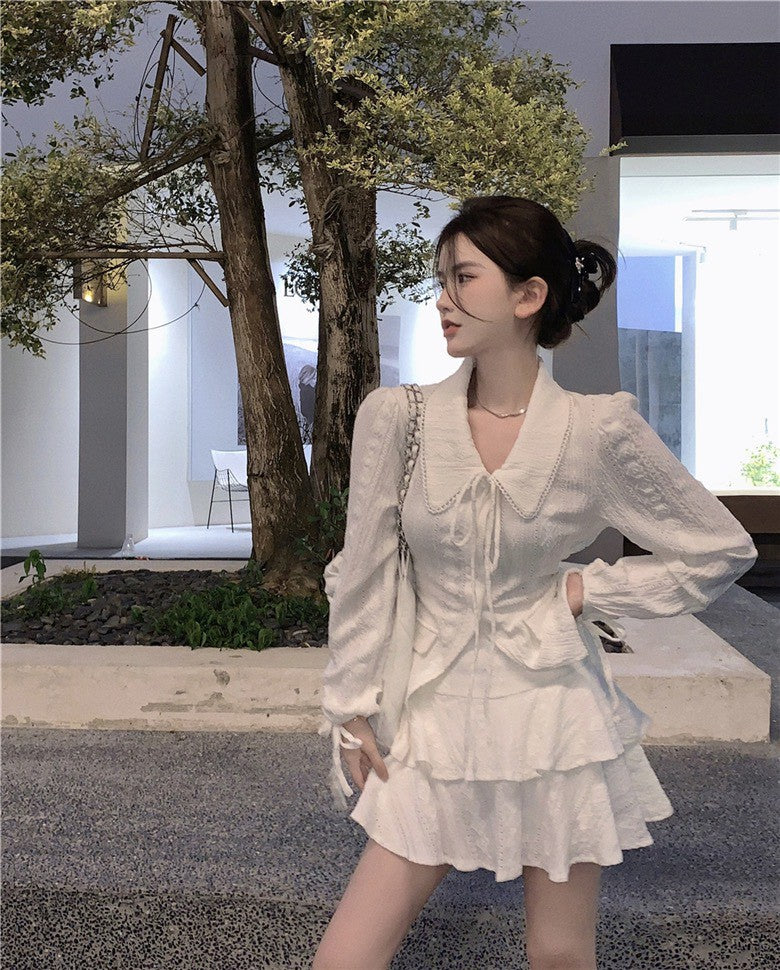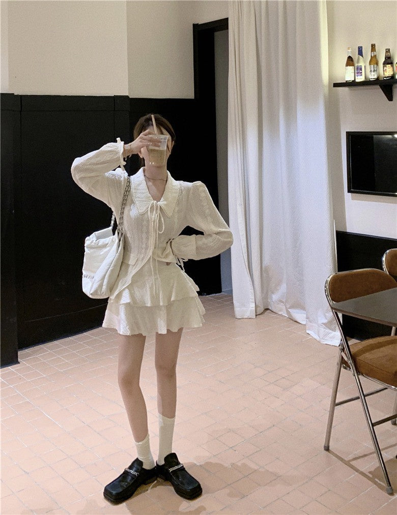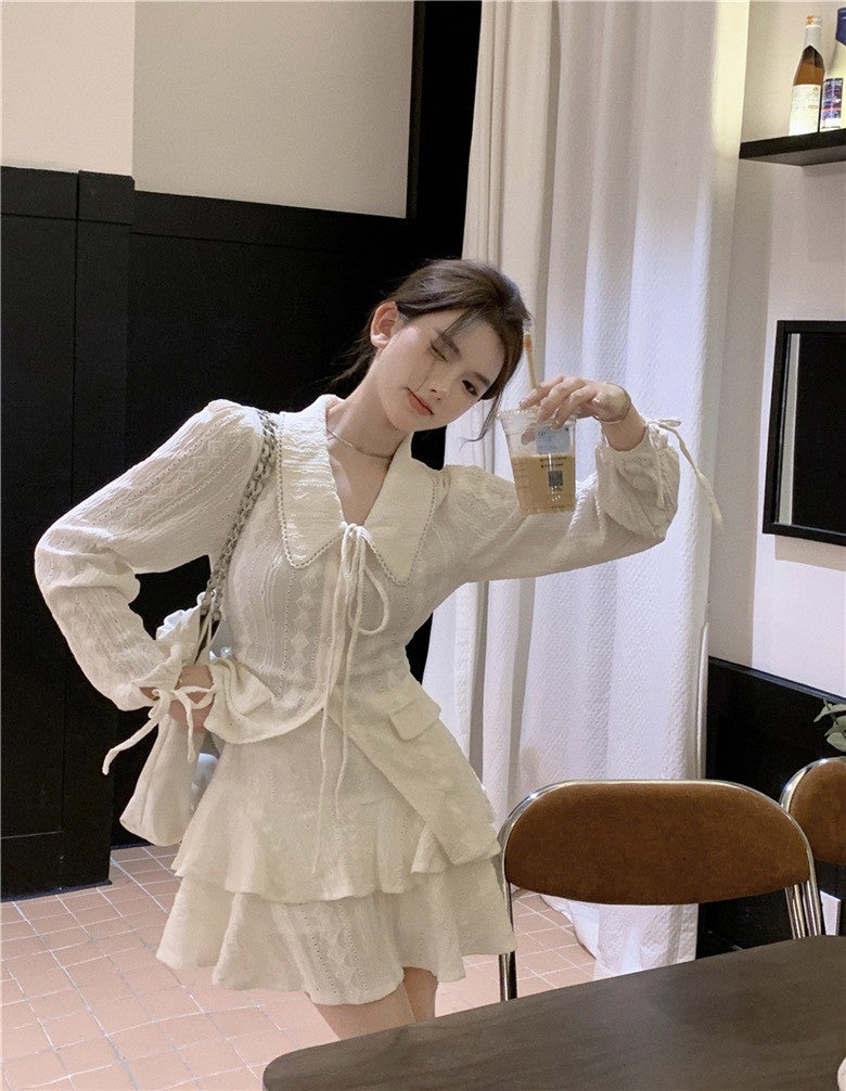 NA+ 初戀甜美緹花翻領繫帶襯衫 蛋糕半身裙