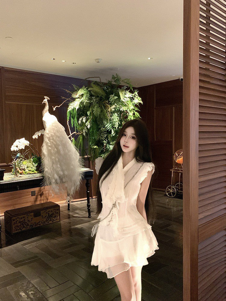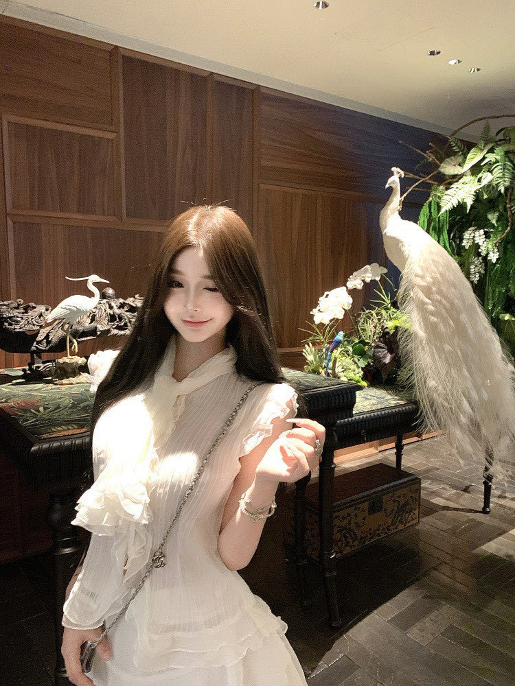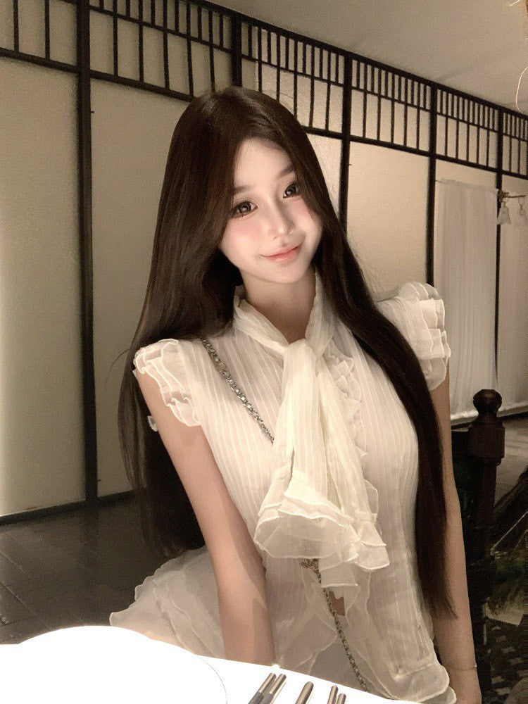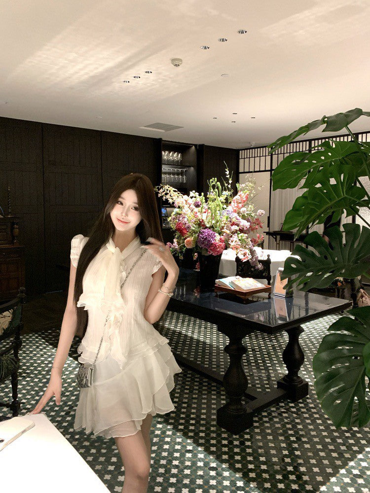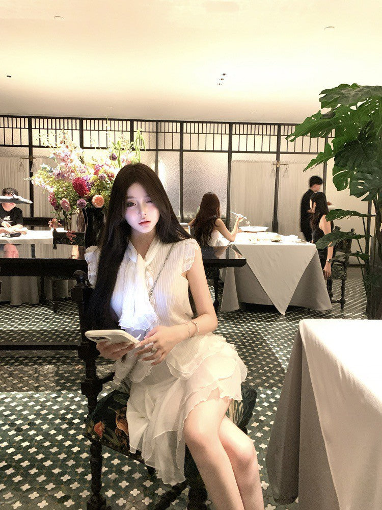 NA+ 南洋千金雪紡飄逸荷葉上衣 不規則半身裙 杏